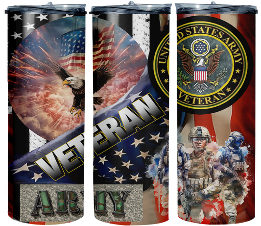 Military Stainless “All Service's Art” Tumbler, Veteran Theme